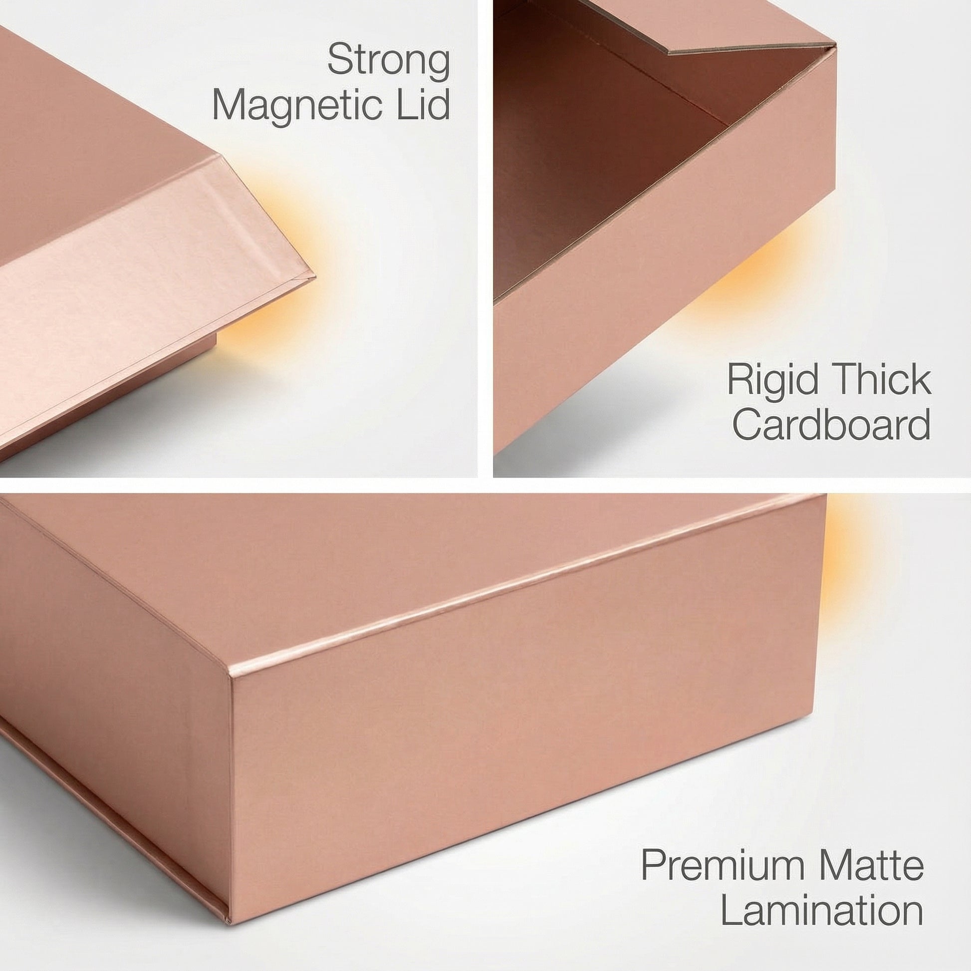 - 3 × Rose Gold Magnetic Gift Boxes (33 × 25 × 12 cm)