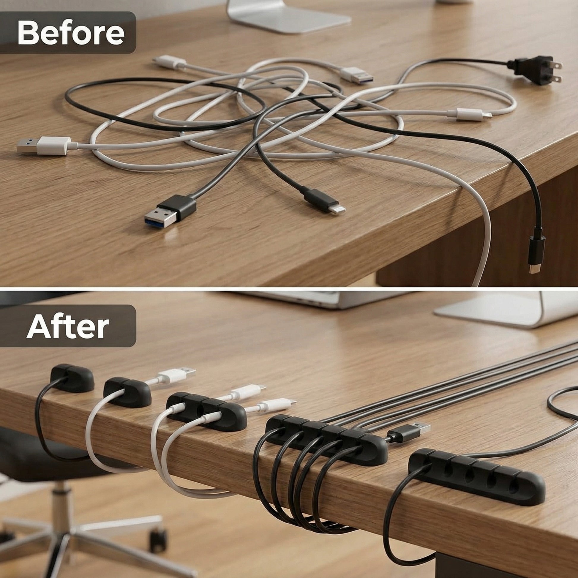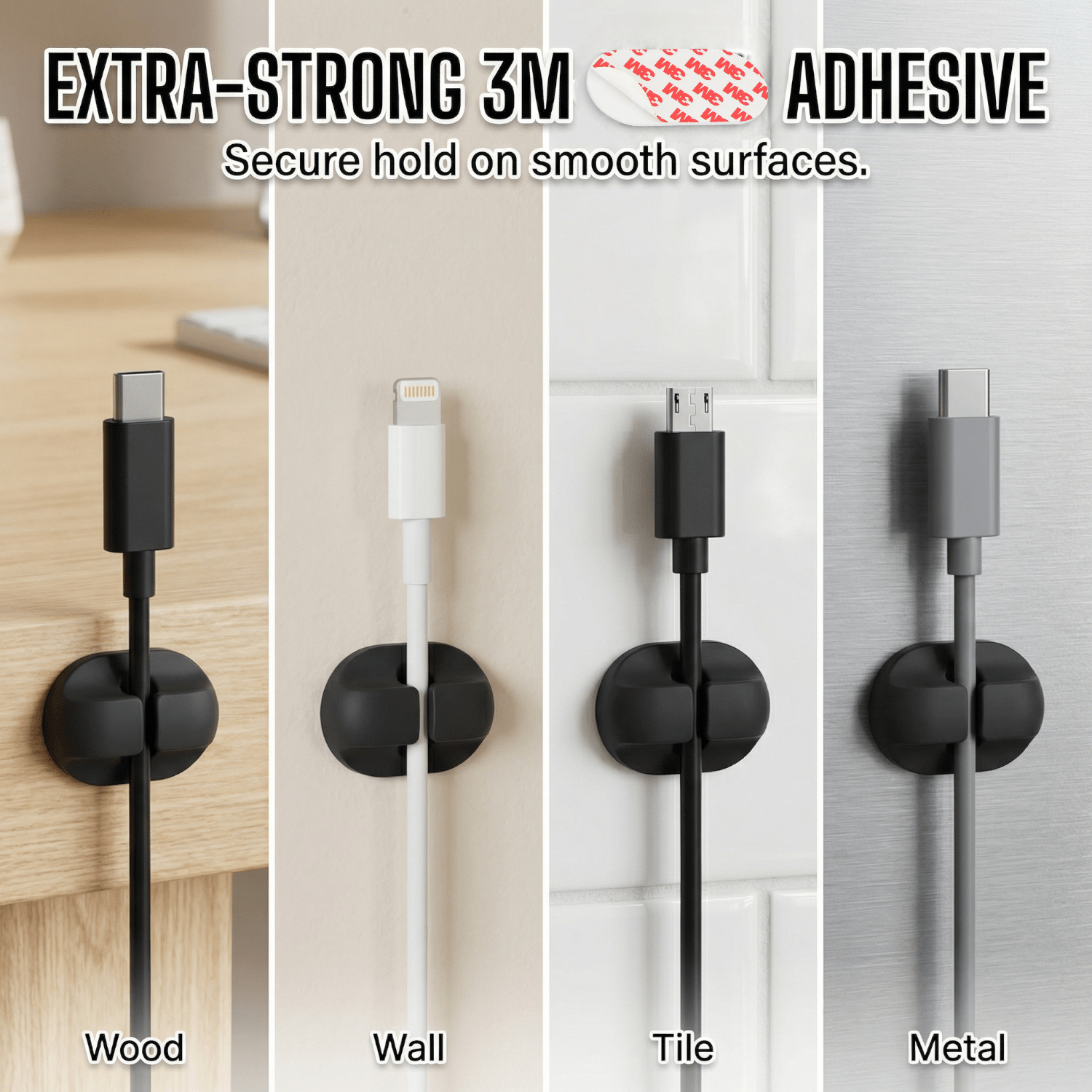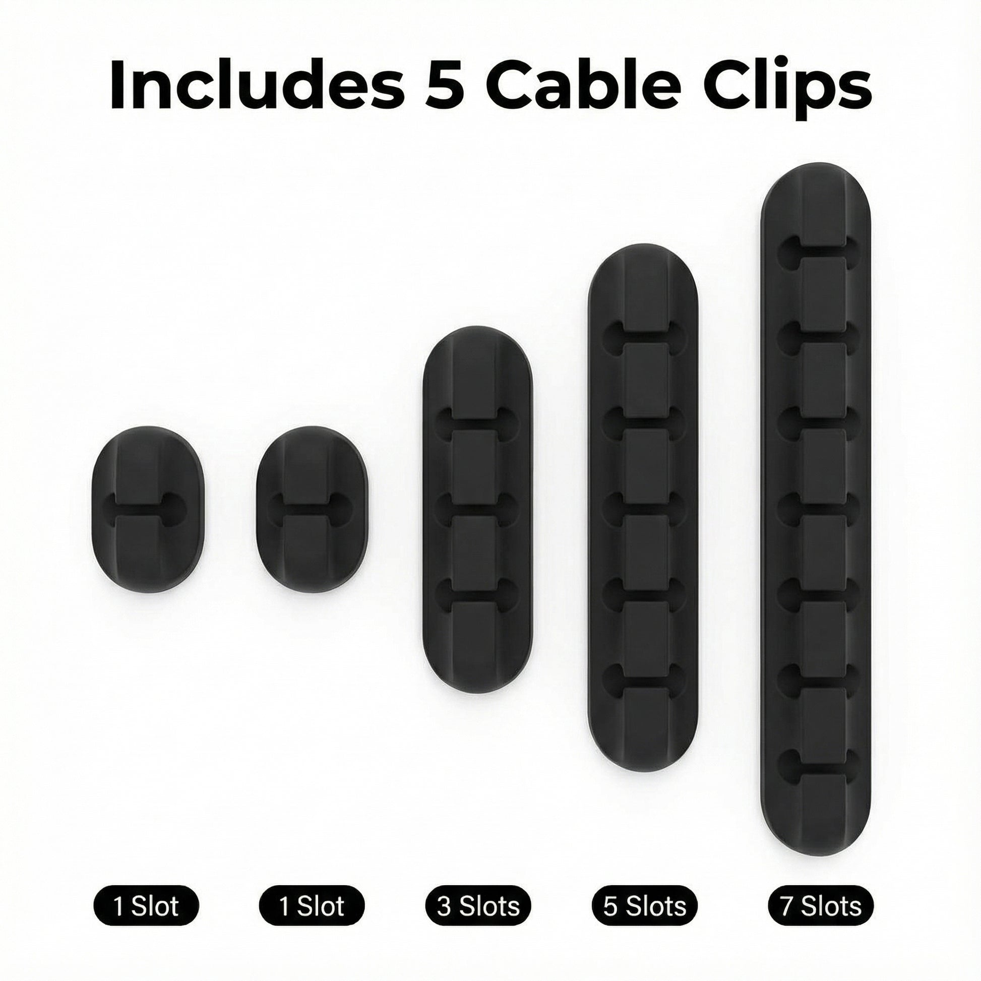 Strong Adhesive Backing – Sticks to clean, smooth surfaces. Mixed Slot Styles – Multiple slot counts for different cable needs (as per listing). Compact Cable Control – Keeps chargers and wires organized and accessible. Clean, Minimal Look – Helps reduce desk clutter and tangles. Matte Black Finish – Blends into modern desks and electronics setups. ________________________________________