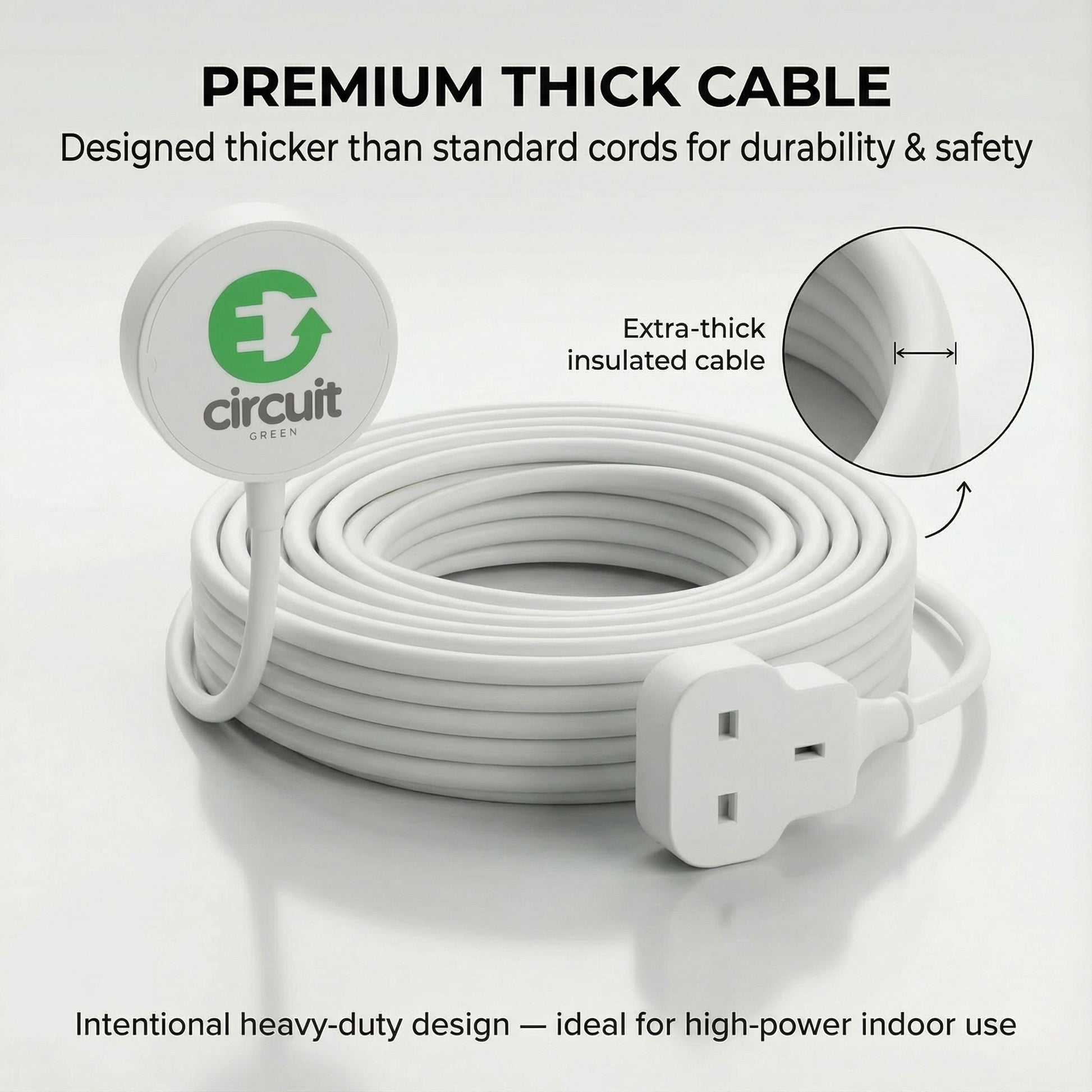 A single-socket UK 3‑pin extension cord designed to extend power safely and conveniently for everyday indoor use. Ideal for home, office, and light commercial setups where you need extra reach to a single device.